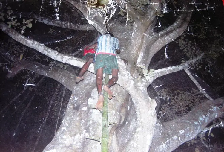 Jenu Kurumbas live in the forest and mountain areas. In the earlier days, they were living deep inside the forest. But these days they are living in the outskirts of forest area. Some of them live in settlements of 15 to 20 families. Some of them live in the colonies made by the Government. In the earlier days, honey-tapping was their main occupation. These days, they not only tap honey, but also work as daily labourers. Some of them work as mahouts.